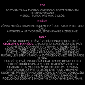 Pozývam Vás na tvorivý víkendový pobyt s prvkami sebapoznávania.